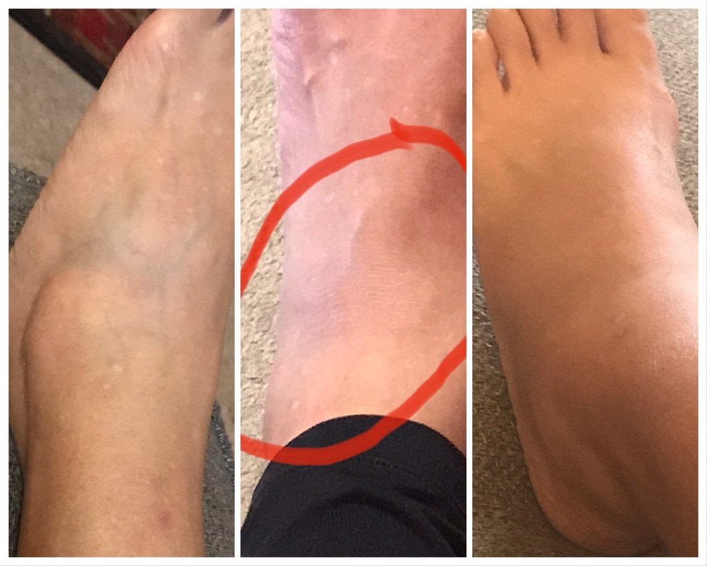 I’ve not had an ankle sprain that bad in my entire life. I do acknowledge that I’ve never been 52 years old and fallen like that either, so there’s that. I ended up with an inner and outter ankle sprain, pain and discoloration on top of my foot, and pain in my knee, and up into my hip flexors. My foot and cankle were all bruised up, my left knee had some swelling, my hip was sore, and I ended up back to using my cane for almost a week.
